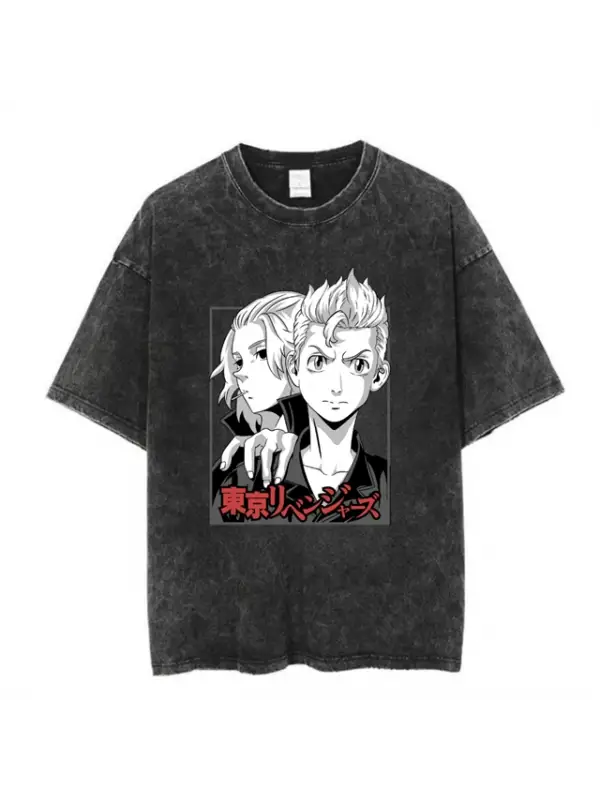 Yıkamalı Anime Tokyo Revengers Baskılı Unisex Oversize Vintage T-Shirt