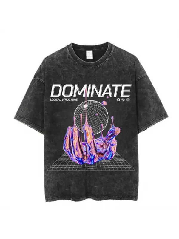 Yıkamalı Dominate Baskılı Unisex Oversize Vintage T-Shirt