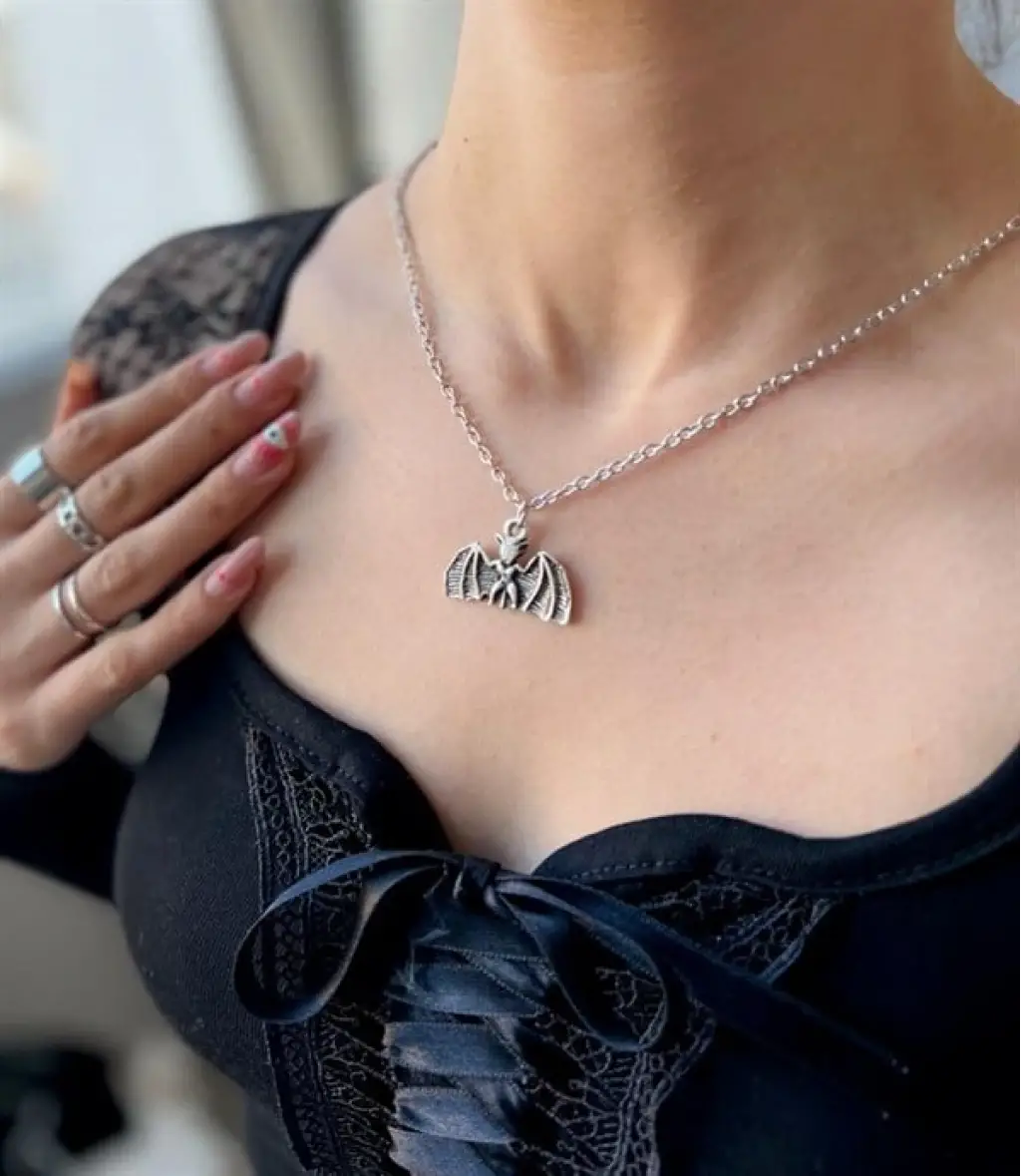 Gümüş Renk Zincirli Siyah Kalp Pençe İthal Kolye