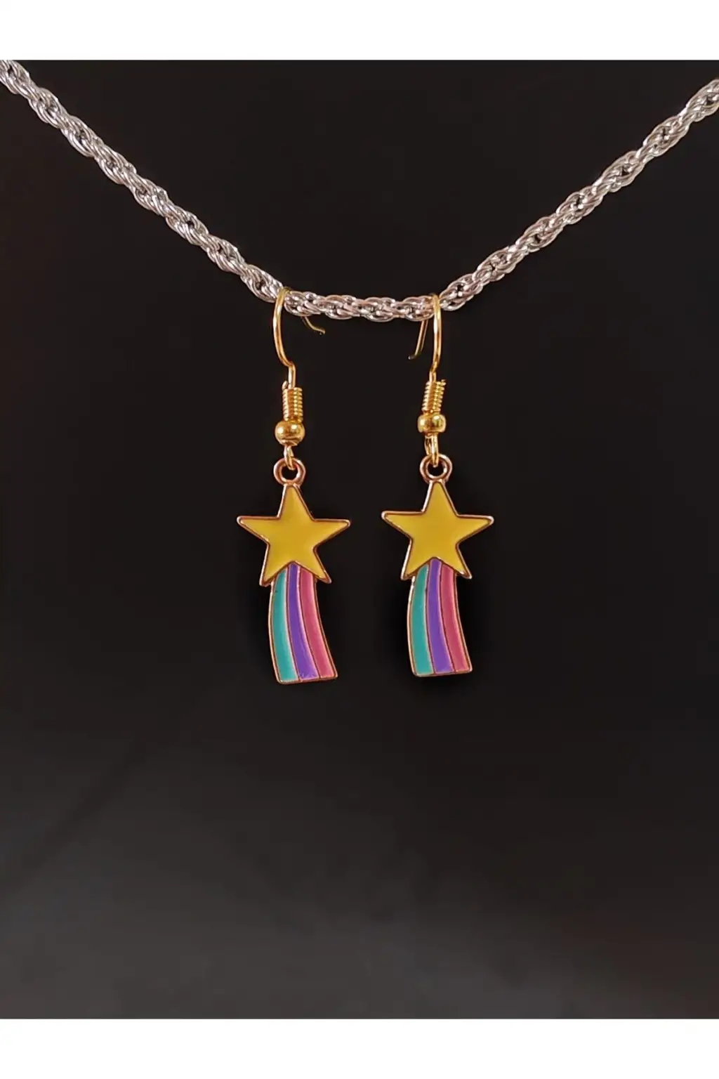 Yüksek kaliteli malzemelerden üretilen bu gökkuşağı sembol küpeler, günlük kullanıma uygun şık ve zarif bir seçenektir.
