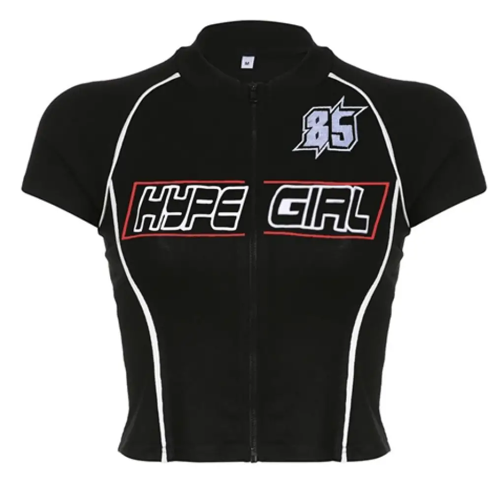 Y2k Zip Fermuarlı Siyah Crop