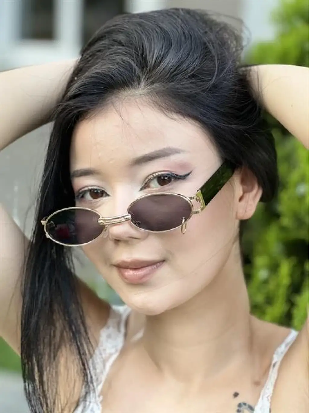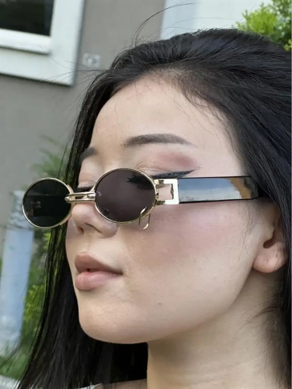 Touz Tekstil Güvencesi Ve Toum MArkası İleY2K Piercing Detay Oval UV Korumalı Siyah Renk Bakır Uçlu Güneş Gözlüğü ile Tarzınızla Fark Yaratın. Yazın Tadını Çıkartın