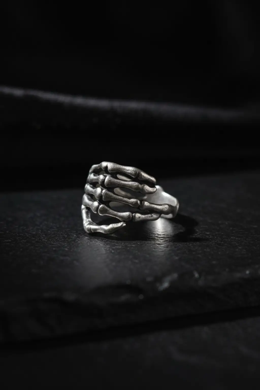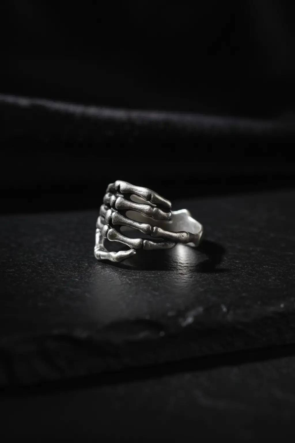 Gümüş Renk İskelet El Yüzük, özel günlerde veya günlük hayatta stilinizi yansıtmanızı sağlayacak şık bir takı seçeneğidir.
