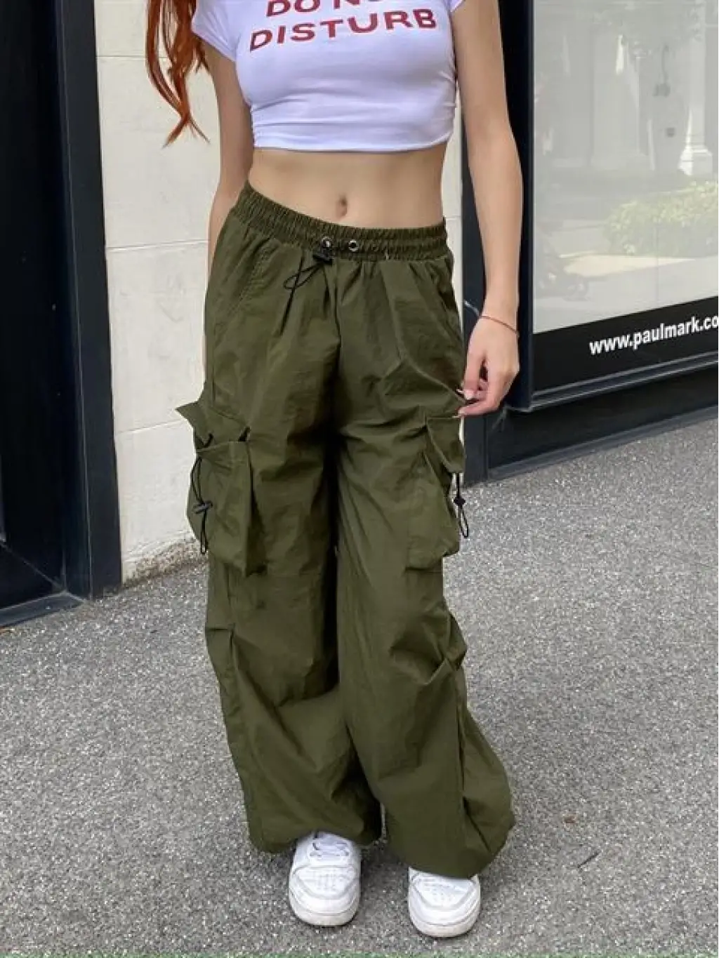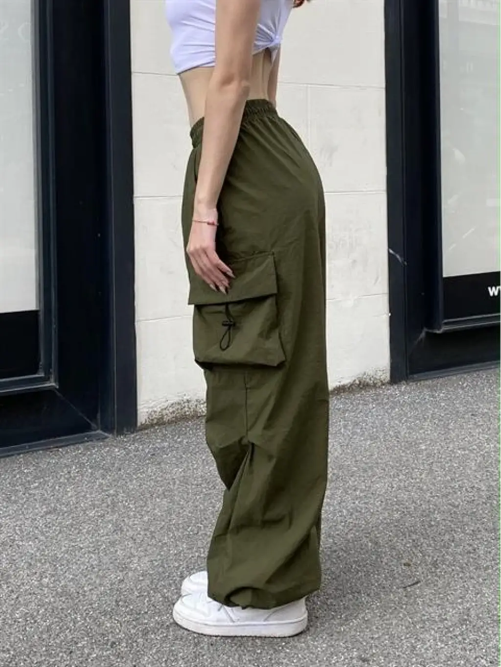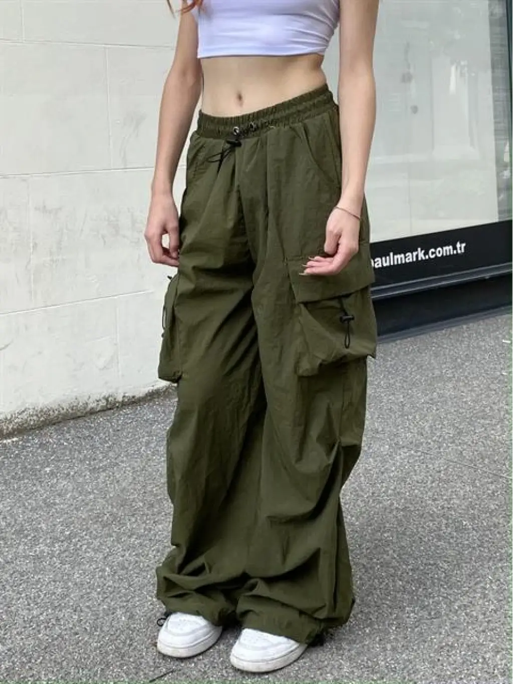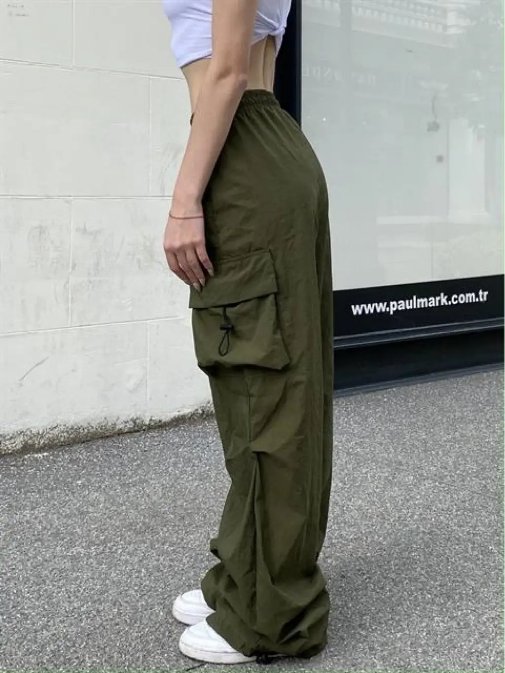 Krem Tactical Paraşüt Kumaş Kargo Cepli Oversize Unisex Pantolon