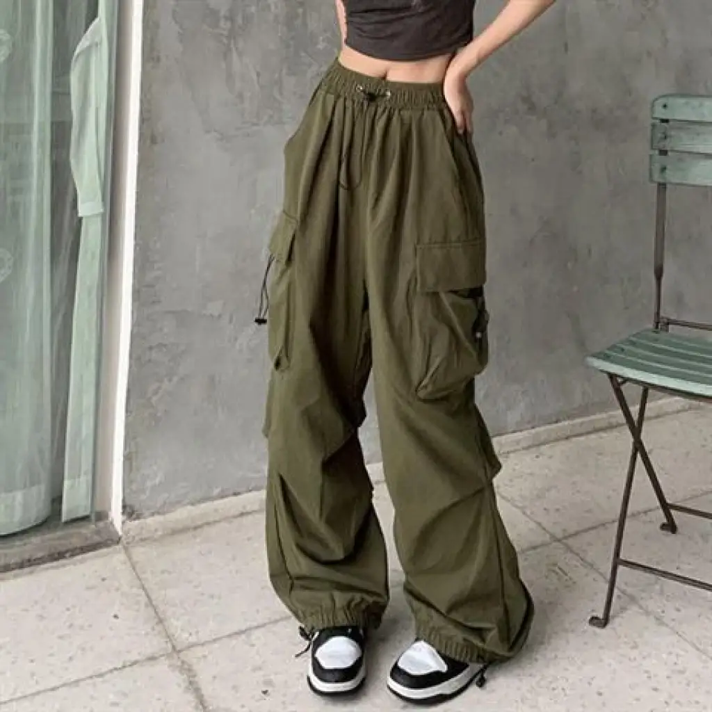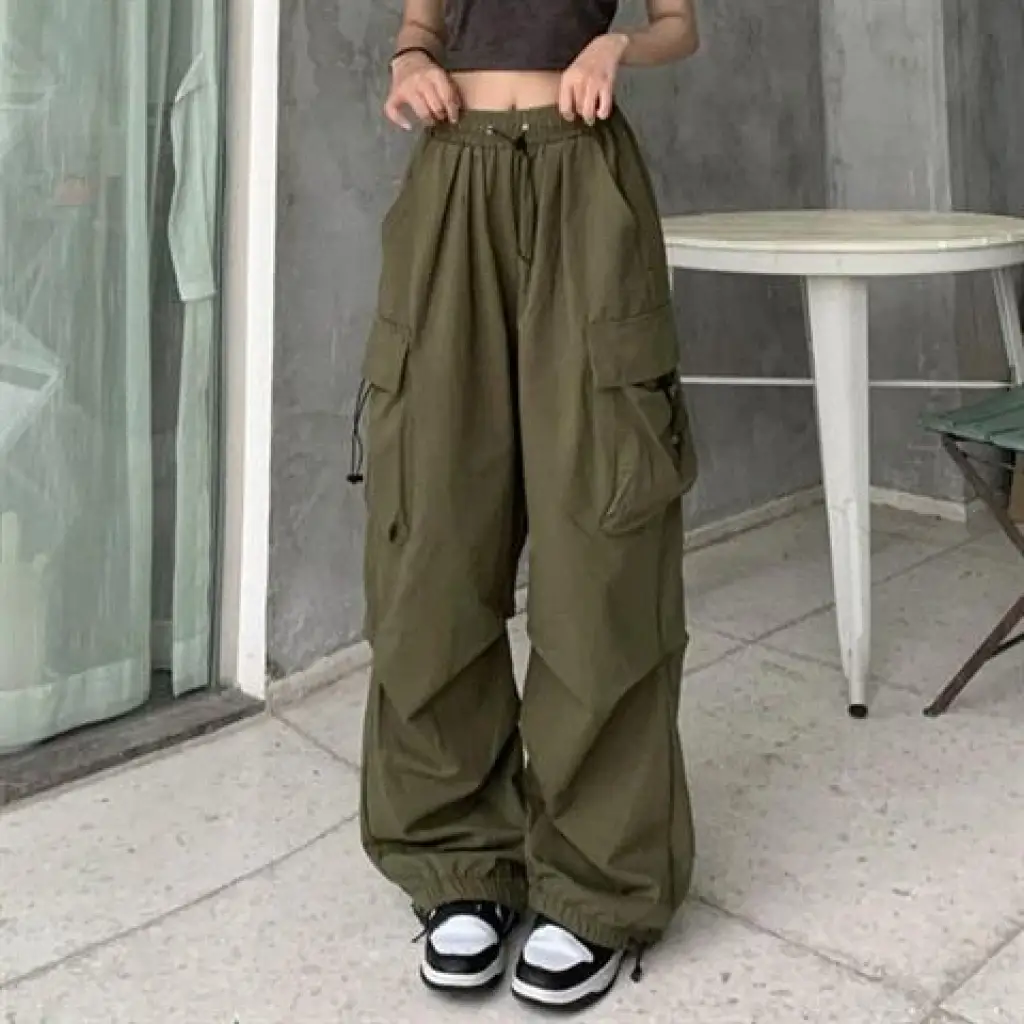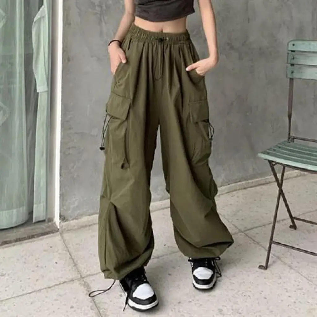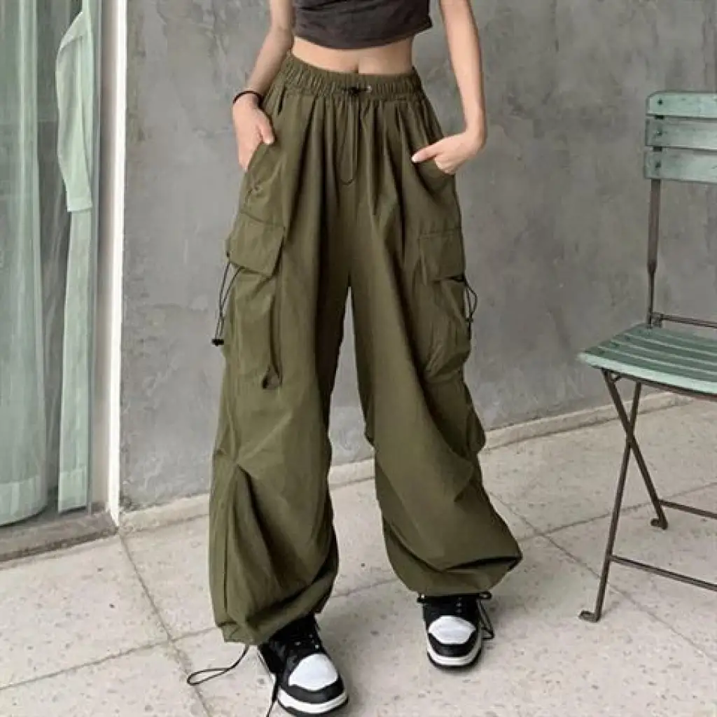 Krem Tactical Paraşüt Kumaş Kargo Cepli Oversize Unisex Pantolon