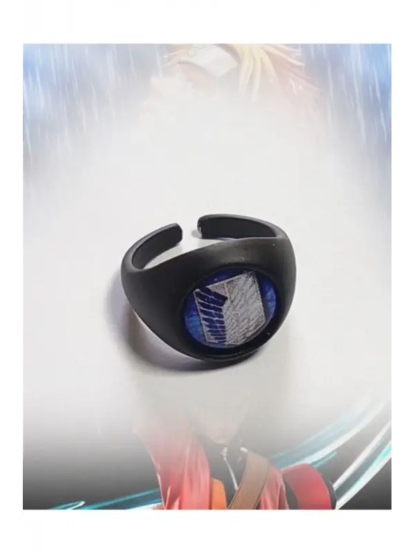 Antik Gümüş Kaplama Anime Attack On Titan Ayarlanabilir Siyah Yüzük