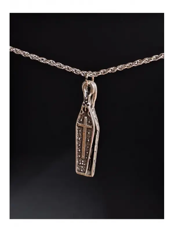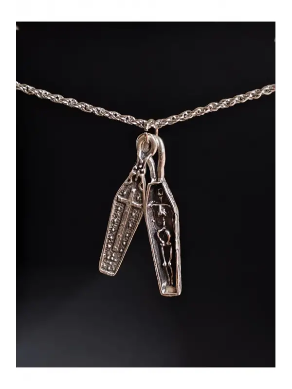 Antik Gümüş Kaplama Heart Gotik İki Figürlü Unisex Zincirli Hediyelik Kolye