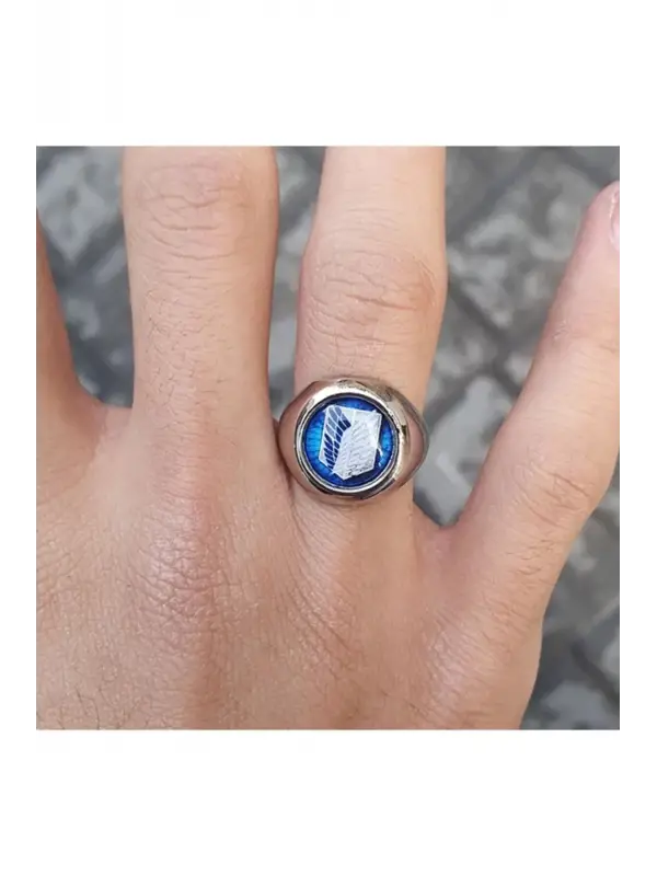 Antik Gümüş Kaplama Unisex Ayarlanabilir Anime Attack On Titan Logo Yüzük