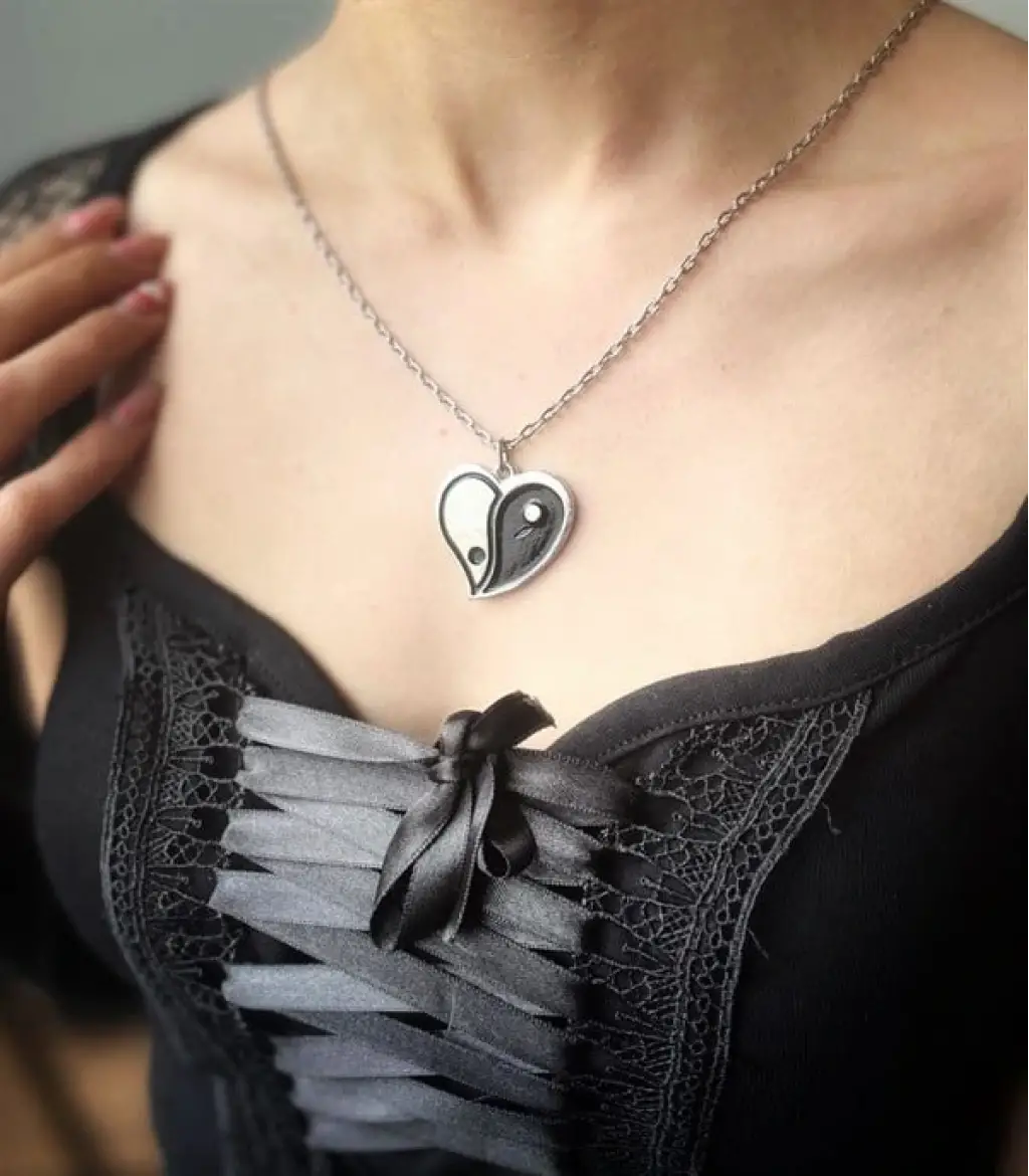 Gümüş Renk Zincirli Siyah Kalp Pençe İthal Kolye